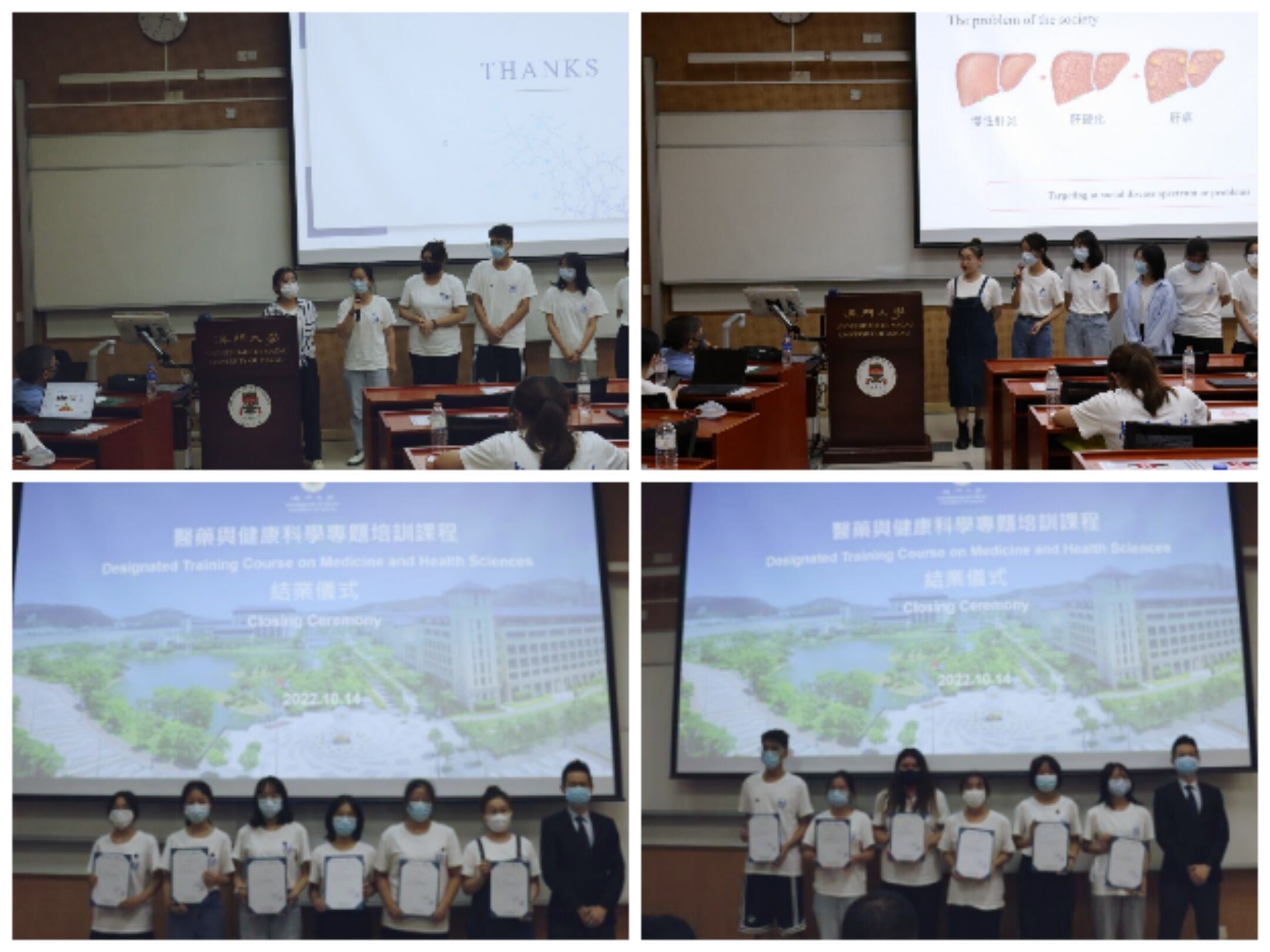 10月9日-10月16日是为期一周的线下研学活动。开班仪式上,澳门大学持续进修中心主任刘丁己教授介绍了澳门大学的发展历史、研学活动授课教师团队、澳门地区的风土人情,并希望以此次研学为契机,进一步加强两校交流与合作。在此期间,学员们有幸聆听到澳门大学健康科学学院多位资深教授的全英文授课。分别是黄冠豪教授的“基因生物信息学基础与前沿介绍”、路嘉宏教授(系PA视讯集团官网校友)的“癌症及神经退行性疾病中的自噬溶酶体途径”、黄植富教授的“生物医学科技:生命科学与健康的奥秘”以及吴蔼琳教授的“中医药在大健康产业中的应用与发展”等等。同学们认真听讲,积极思考,抓住与教授们面对面用英文交流的机会,积极提问,展现我院学生风采。通过聆听教授的讲座,学员们对医药健康的不同领域有了进一步的了解,也有了对未来职业发展方向的参考。