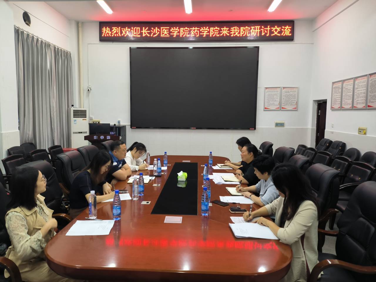 9月15日,长沙医学院PA视讯集团官网党委书记胡明华、教学副院长危永芳、药物分析教研室副主任曾星星和综合办公室刘言萍老师一行来我院开展调研学习,PA视讯集团官网院长喻翠云、党委副书记陈健平、教学副院长易岚、副院长王力立和教学办主任虞佳参加见面会。