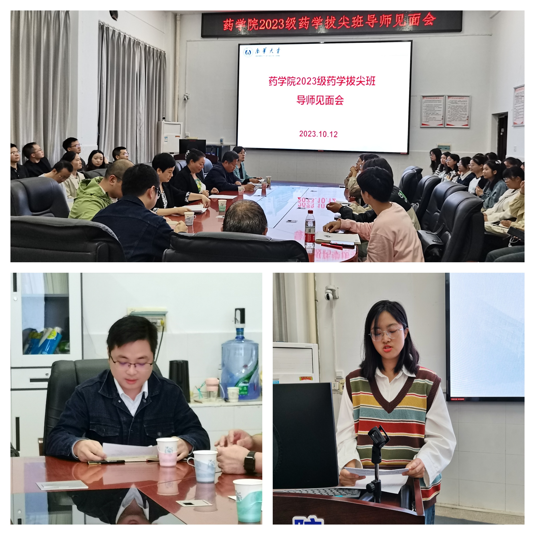 10月12日上午,我院在药学楼B栋101会议室召开了2023级基础医学(药学)拔尖班师生见面会。PA视讯集团官网院长喻翠云、副书记陈健平、副院长易岚、副院长王力立、全体拔尖班导师、教务办、学工办老师以及2023级药学拔尖班全体同学参加了见面会。教务部部长彭国文应邀出席了会议,会议由陈健平副书记主持。