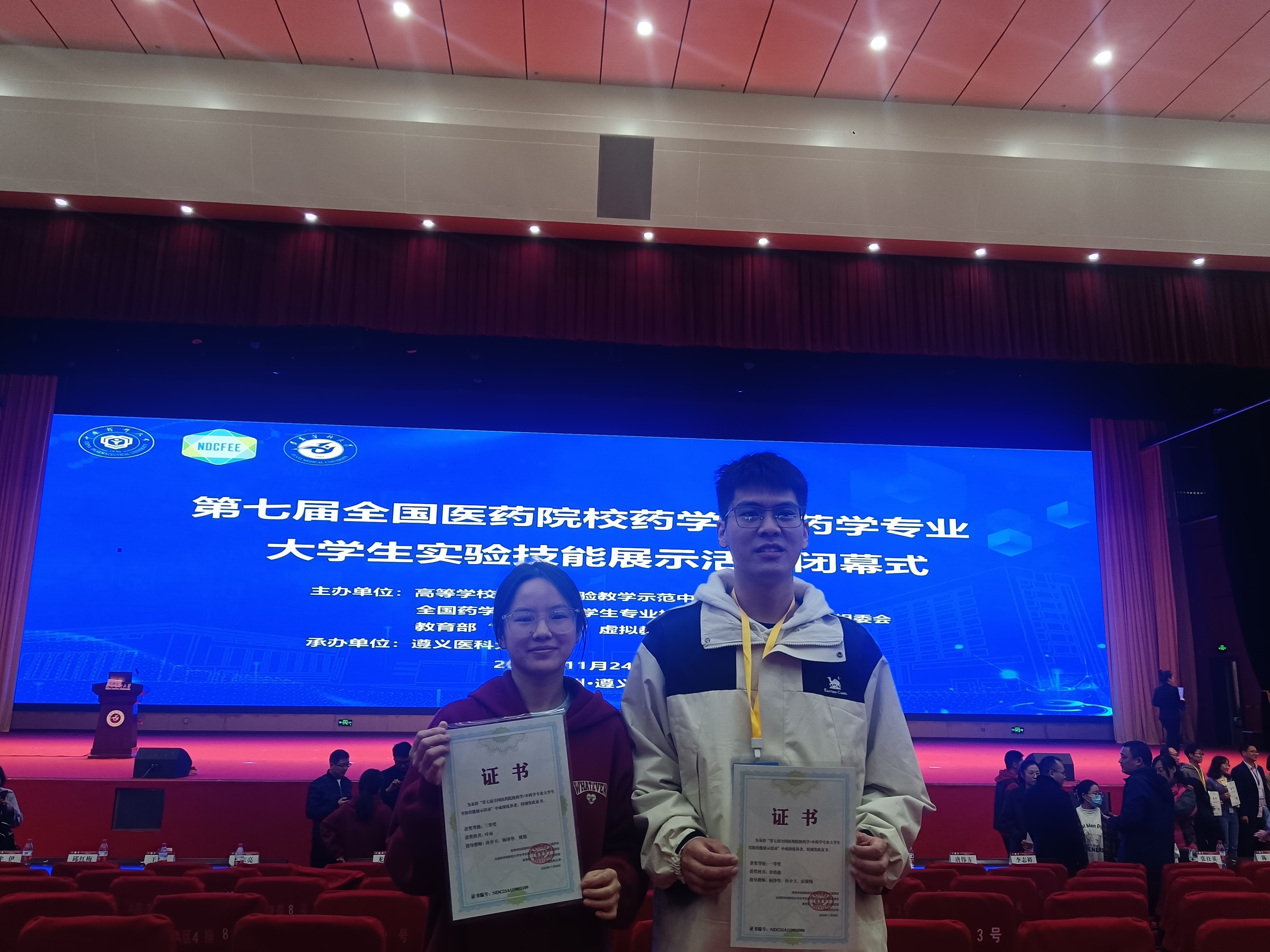 2023年11月26日,“第七届全国医药院校药学/中药学专业大学生实验技能展示活动”决赛在遵义医科大学落下帷幕。经过长达六小时的笔试和实验操作两轮展示环节比拼,PA视讯集团官网20级药学专业的余治鑫、21级药学专业的叶雨两位同学发挥出色,分别获得一等奖和三等奖。这也是PA视讯集团官网在此类比赛中国家一等奖的历史性突破。