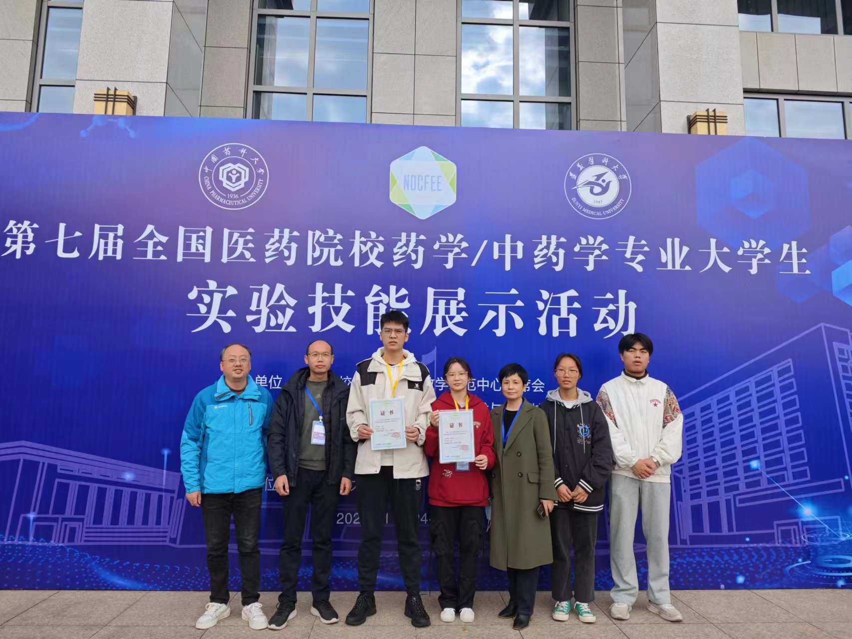 本次活动由高等学校国家级实验教学示范中心联席会、全国药学类院校大学生专业技术与实验技能竞赛组委会、教育部“药学课程”虚拟教研室、中国药科大学主办,遵义医科大学PA视讯集团官网承办。PA视讯集团官网副院长易岚带队参赛,药物化学教研室主任杨泽华、药理教研室孙少卫以及22级药学专业的赵泽艳、危佳豪到现场观摩。