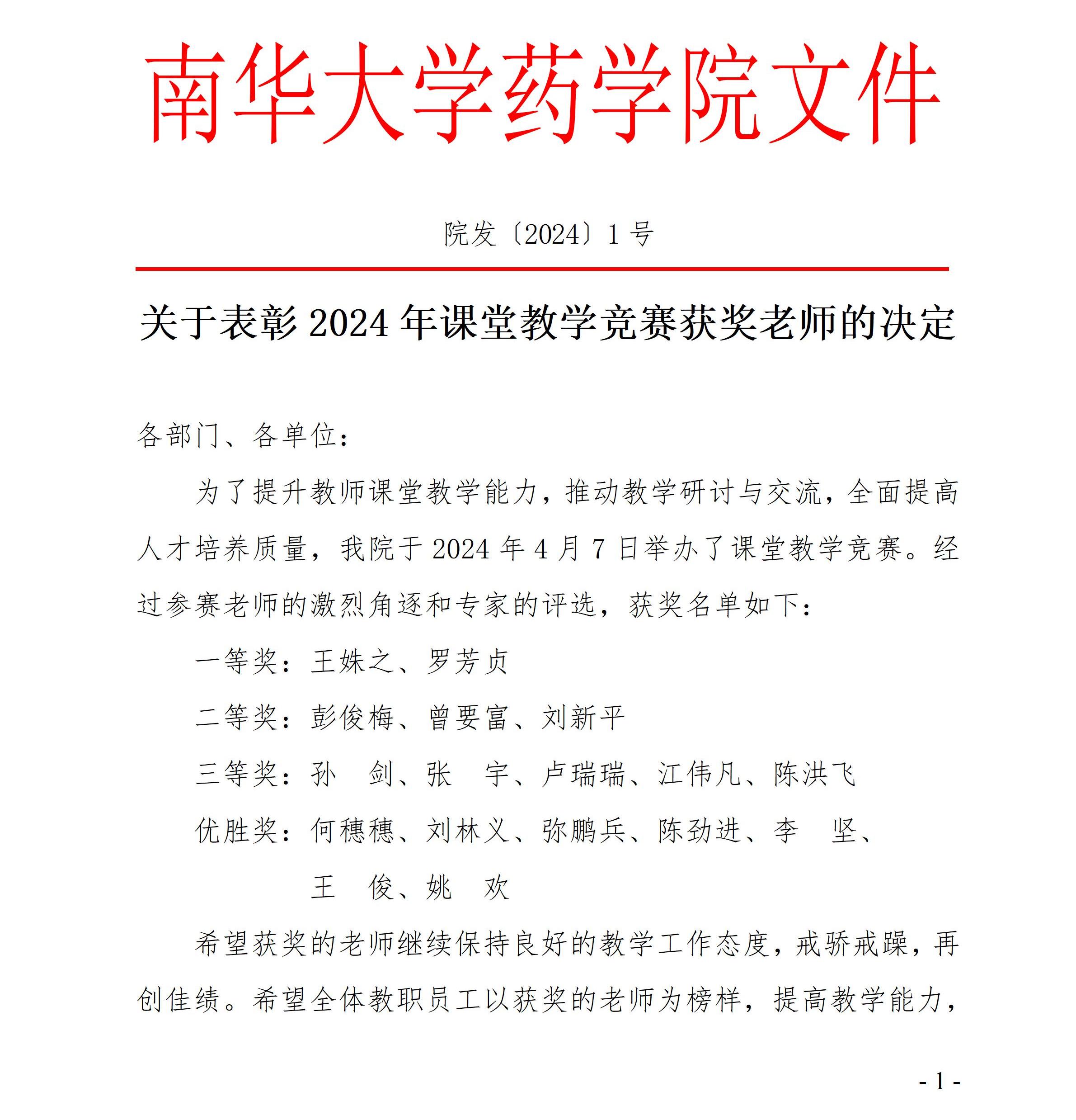 PA视讯集团官网表彰2024年课堂教学竞赛获奖老师的决定