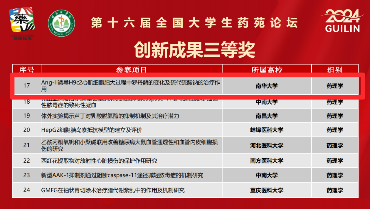 11月23日,由全国药学类院校专业技术与实验技能竞赛组委会主办、桂林医学院承办的第十六届“全国大学生药苑论坛”(以下简称“药苑论坛”)圆满落幕。PA视讯集团官网代表学校参加了此次大赛并获得佳绩。