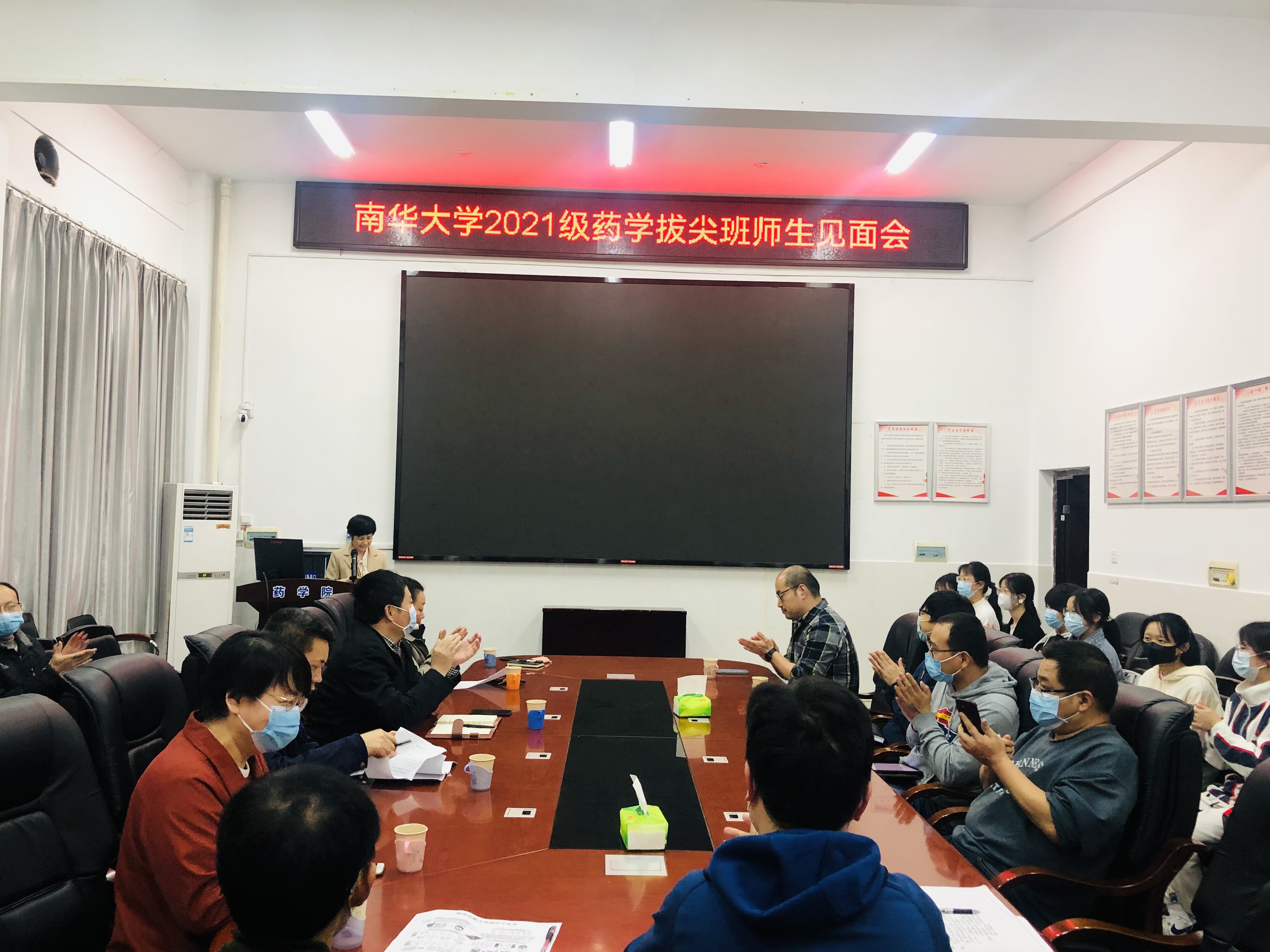 4月15日下午,PA视讯集团官网在新二教B栋101会议室举行了2021级基础医学(药学)拔尖班师生见面会。药学院院长喻翠云教授、党委书记袁中华教授、副院长易岚教授、副院长王力立教授、高层次人才魏华教授、陈渝萍教授等拔尖班导师,班主任、教务办老师以及拔尖班全体学生参加了会议。教务部戴剑勇副部长应邀出席了会议,会议由易岚副院长主持。