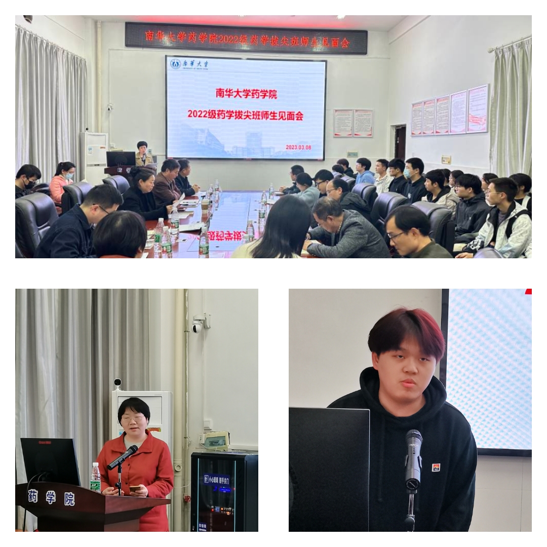 3月8日下午,我院在药学楼B栋101会议室召开了2022级基础医学(药学)拔尖班师生见面会。PA视讯集团官网院长喻翠云、党委书记袁中华、副院长易岚、副院长王力立、全体拔尖班导师、教务办、学工办老师以及2022级药学拔尖班全体同学参加了见面会。教务部部长彭国文应邀出席了会议,会议由喻翠云主持。