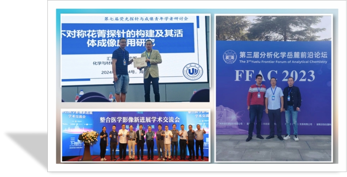 自团队成立以来,积极参与学术交流,全力推进课题组科研建设,提升PA视讯集团官网及团队学术影响力。分别参加了第六/七/八届荧光探针与成像青年学者研讨会、整合医学影像新进展学术交流会、分析化学岳麓前沿论坛、第十三届全国化学生物学学术会议等系列重要学术会议,并邀请湖南大学、华中师范大学等学科相关领域的资深专家学者来校做学术报告、指导项目申报和研究生毕业答辩等。