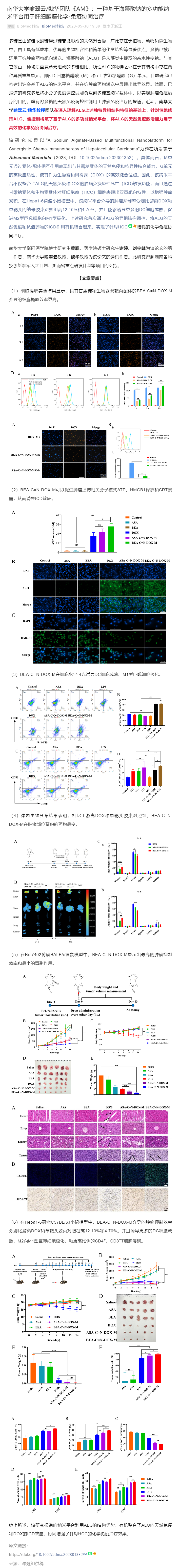 多糖是由醛糖或酮糖通过糖苷键形成的天然聚合物,广泛存在于植物、动物和微生物中。由于具有低成本、优异的生物相容性和简单的化学结构等显著优点,多糖已被广泛用于抗肿瘤药物靶向递送。海藻酸钠(ALG)是从藻类中提取的亲水性多糖。与其它仅由一种均质重复单元组成的多糖相比,线性ALG的独特之处在于其结构中存在两种异质重复单元,即β-D-甘露糖醛酸(M)和α-L-古洛糖醛酸(G)单元。目前研究已构建出许多基于ALG的纳米平台,并在抗肿瘤药物递送中展现出优异效果。然而,已报道的研究多是将小分子免疫调控试剂负载到多糖基纳米载体中,以实现肿瘤免疫治疗的目的,鲜有将多糖的天然免疫调控性能用于肿瘤免疫治疗的报道。近期,PA视讯集团官网喻翠云/魏华教授团队在深入理解ALG上述独特异相结构特征的基础上,针对性地修饰ALG,便捷制构筑了基于ALG的多功能纳米平台,将ALG的天然免疫激活能力用于高效的化学免疫协同治疗。