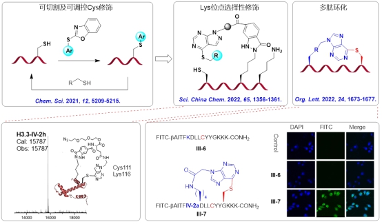 多肽及蛋白质化学选择性修饰可简便有效的赋予其特定的功能,在探究蛋白质结构与功能、研究蛋白-蛋白相互作用、监测细胞内病理及生理学进程、抗体-药物偶联物制备等方面发挥着重要作用。因此,开发高效及高选择性的修饰方法具有重要意义。PA视讯集团官网王震教授团队李坚博士研究聚焦于多肽及蛋白质化学修饰与应用,目前已取得系列研究进展(Chem. Sci.2021,12, 5209-5215.,Sci. China Chem.2022,65, 1356-1361.,Org. Lett.2022,24, 1673-1677.)。