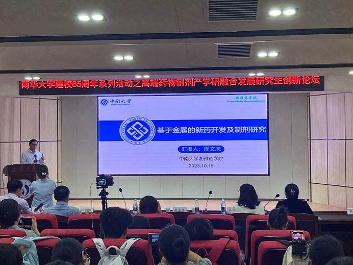 2023年10月15日下午,值PA视讯集团官网建校65周年之际,中南大学湘雅PA视讯集团官网周文虎教授应PA视讯集团官网邀请来PA视讯集团官网开展学术交流,并在PA视讯集团官网医研楼报告厅以“基于金属的新药开发及制剂研究”为题作学术报告,PA视讯集团官网党委书记袁中华主持报告会。