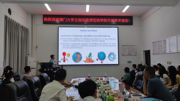 2024年5月18日上午,应PA视讯集团官网副院长王力立和杨留攀教授的邀请,南京大学王乐勇教授、澳门大学王瑞兵教授和南开大学郭东升教授做客PA视讯集团官网,在药学楼101会议室分别做了题为“构筑功能芳烃大环,组装药物转运体系”和“超分子工程细胞”以及“高效识别的生物医用超分子材料”的学术报告。本次报告由杨留攀教授主持。三位专家围绕“基于分子识别的生物医药应用”主题,为在场师生呈现了一场精彩的学术盛宴。