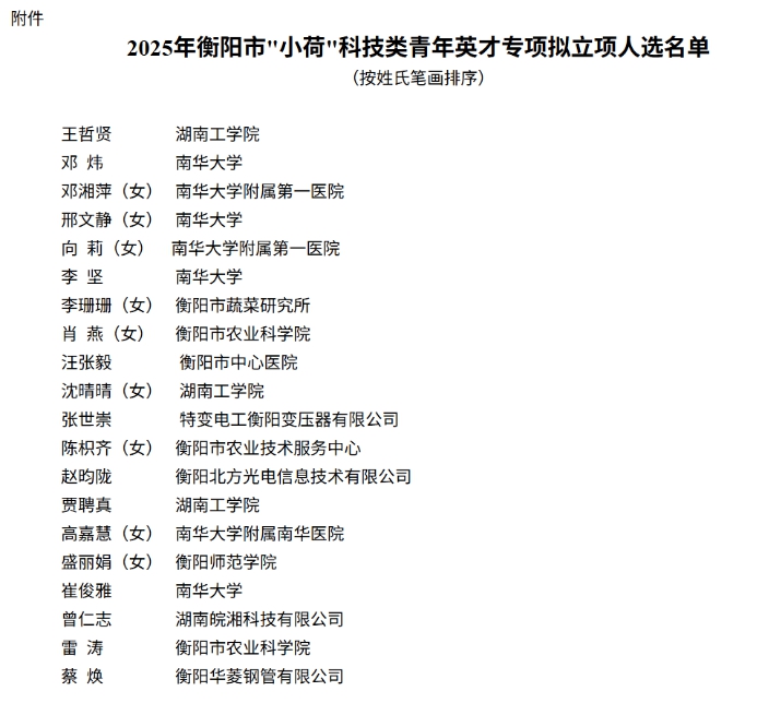 近日,根据中共衡阳市委人才工作领导小组办公室、衡阳市科学技术协会《关于开展2025年衡阳市“小荷”科技类青年英才专项申报工作的通知》(衡市科协字〔2025〕9号)文件精神,经申报、推荐、评审、考察、个人事项审查等程序,评选出2025年市“小荷”科技类青年英才专项拟立项人选20名。其中,PA视讯集团官网李坚博士成功入选2025年衡阳市"小荷"科技人才。
