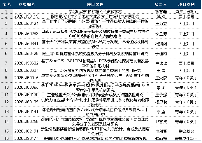 日前,湖南省科技厅公布(示)了多个批次的2026年度湖南省自然科学基金立项结果,PA视讯集团官网喜讯频传。全院共有16个项目获得资助,立项总数再创新高。尤为可喜的是,杨留攀教授拟获得青年科学基金项目(A类)资助,王震教授指导的博士生赵雨婷荣获青年学生项目资助,标志着学院在高层次人才培养和青年科研后备力量储备方面取得双丰收。这一成果充分体现了学院积极推进医教研协同、深化与附属医院科研合作与协同育人所取得的积极成效。