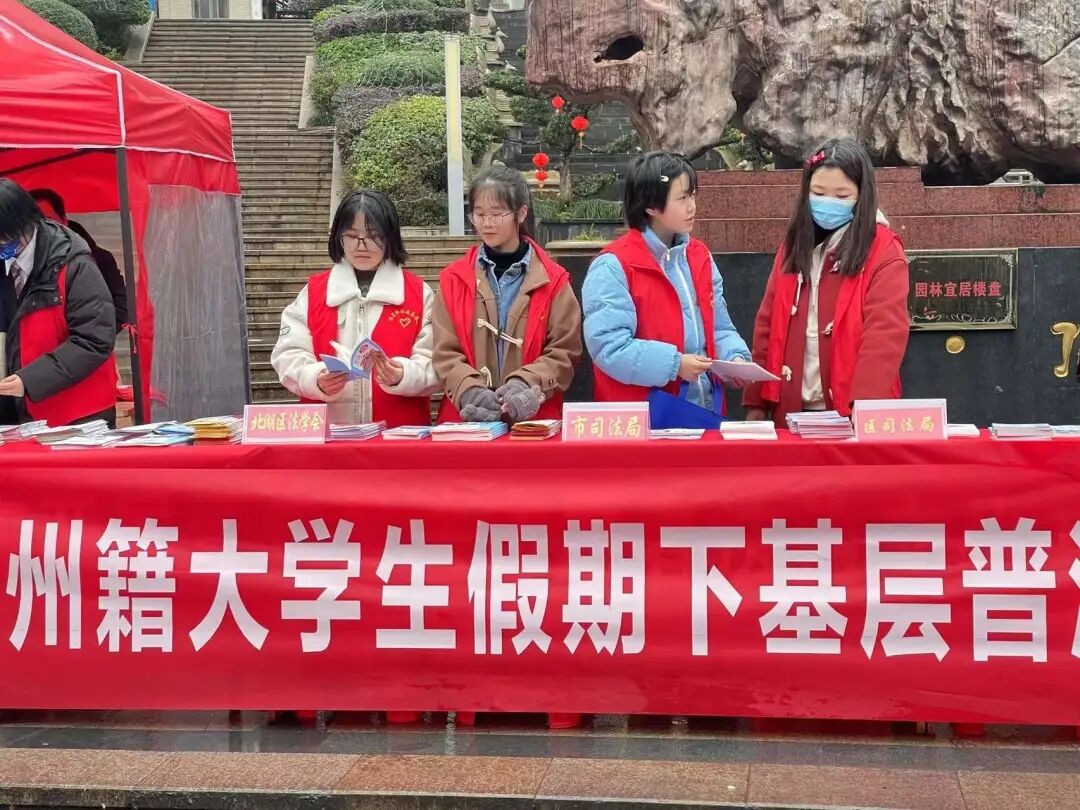 21级药拔01班易琛在寒假期间作为大学生法律服务志愿者深入北湖街道流星岭社区开展新春“送法下乡”活动,向大众科普法律知识,提高全民法律意识和法律素质。新时代大学生应当积极响应国家号召,加大力度推进法律宣传。