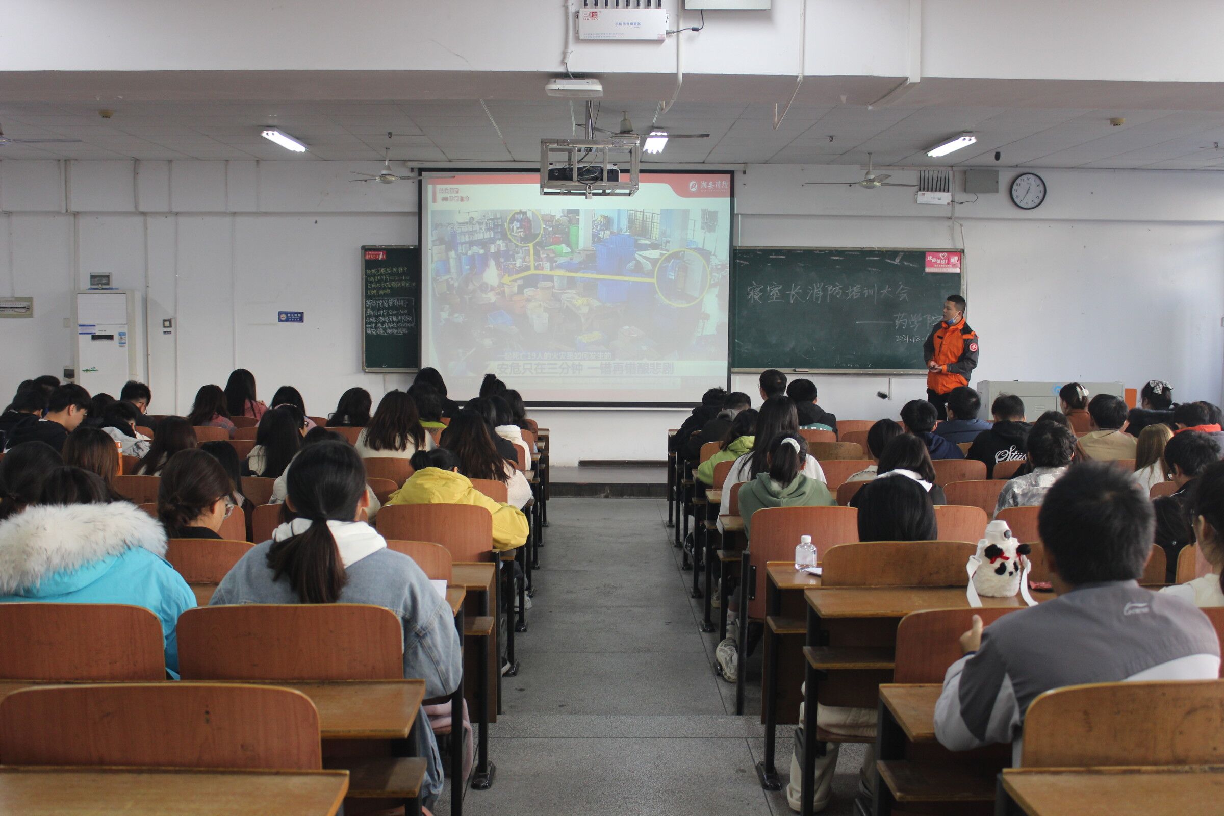 为进一步普及消防安全知识,提高学生火灾防控和应急自救能力,筑牢校园消防安全“防火墙”,12月6日中午,PA视讯集团官网在南华楼212教室举办寝室长消防安全培训大会。本次会议邀请了湖南省消防协会教员李荣主讲,辅导员姚顺超以及全体寝室长参加了本次会议。