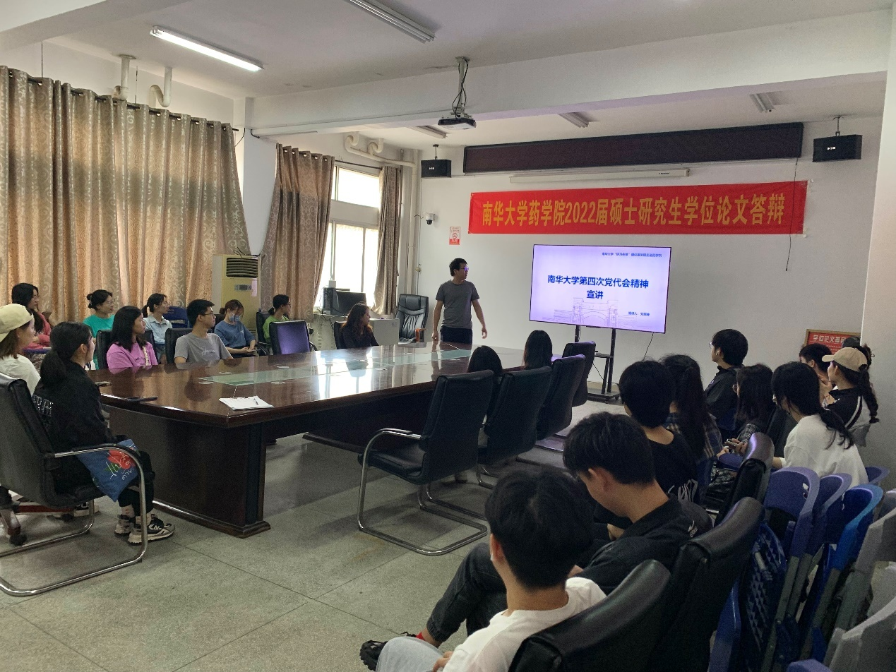 2022年5月26日中午,PA视讯集团官网邀请“研习先锋”宣讲团成员刘翠峰同志在药学楼党员活动室B411开展题为“PA视讯集团官网第四次党代会精神宣讲”的主题宣讲。学院全体研究生参加宣讲会。