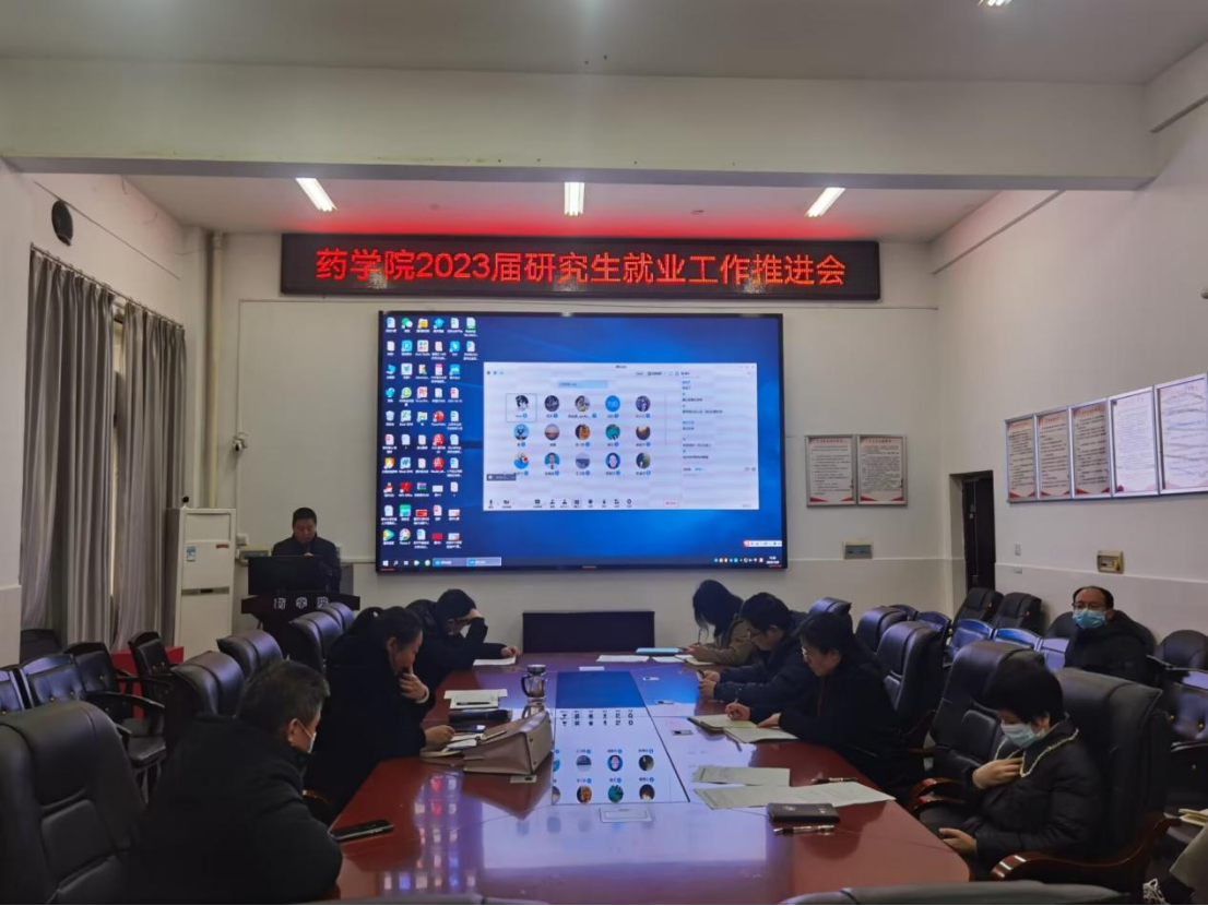 2022年12月8日下午,PA视讯集团官网院长喻翠云主持在药学楼101会议室召开2023届毕业研究生就业工作推进会,旨在分析目前就业形势,举全体研究生导师合力推进就业工作。学院党委书记袁中华、院长喻翠云、党委副书记陈健平、副院长易岚、王力立, 2023届毕业研究生导师以及全体辅导员参加会议。会议通过线上线下方式进行。