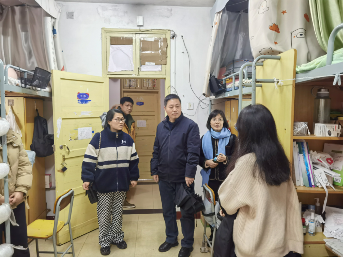 走访过程中,院领导与同学们进行了亲切交谈,详细了解同学们寒假期间的身体健康状况与学习生活情形,并询问同学们返校后的适应情况,希望同学们积极调整心态,保持一个良好的生活作息和精神风貌。同时叮嘱同学们要遵守宿舍规章制度,注意用电安全,妥善保管个人财物,做好卫生管理,保障宿舍整洁。