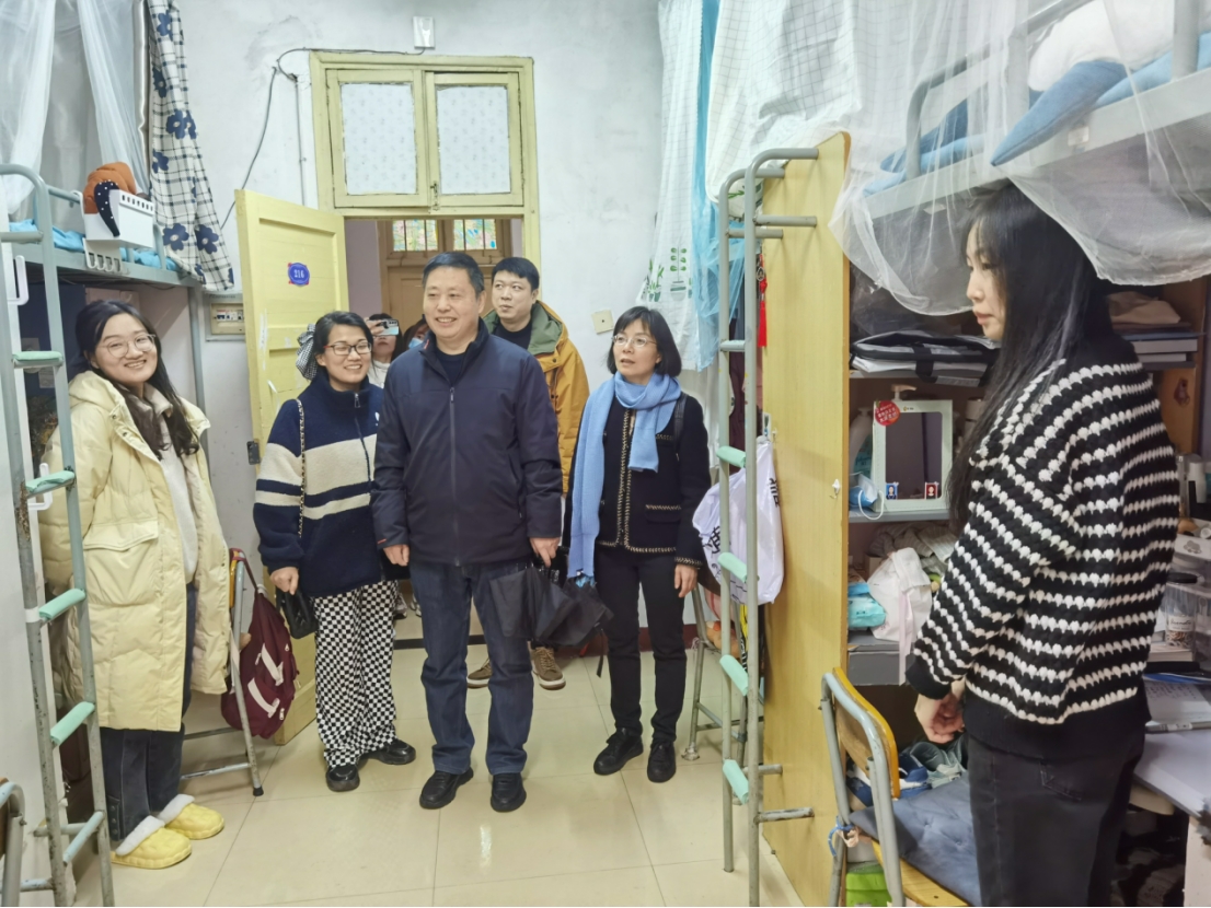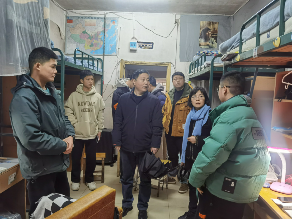 新学期伊始,为全面掌握学生返校后的思想动态、心理状况,帮助学生更好地调整状态、适应新学期的学习生活节奏,2月12日下午,我院党委书记袁中华,党委副书记陈健平带领全体辅导员走近学生,下沉一线,深入走访学生宿舍,为同学们送上暖心关怀和细心指导。