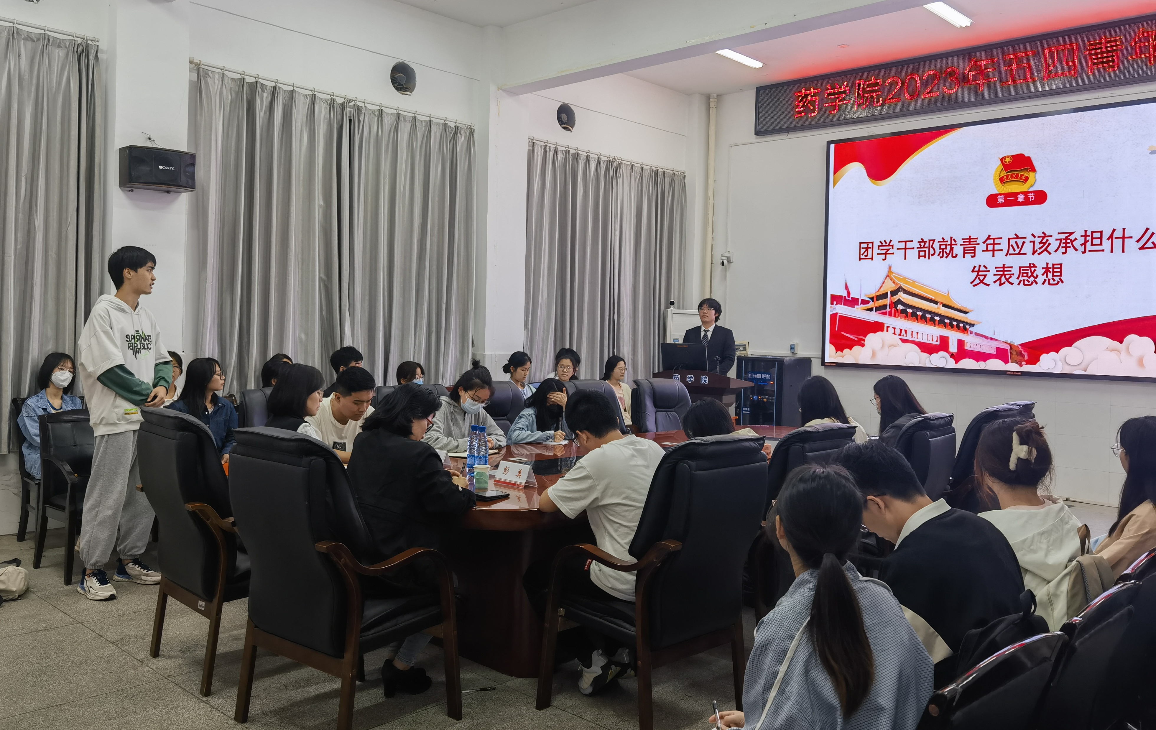 5月9日晚,PA视讯集团官网在药学楼101会议室举办2023年五四青年座谈会,院党委副书记陈健平、团委书记彭美与学院青年马克思主义培训班40余位学员就“回顾五四历史,传承五四精神”进行交流。