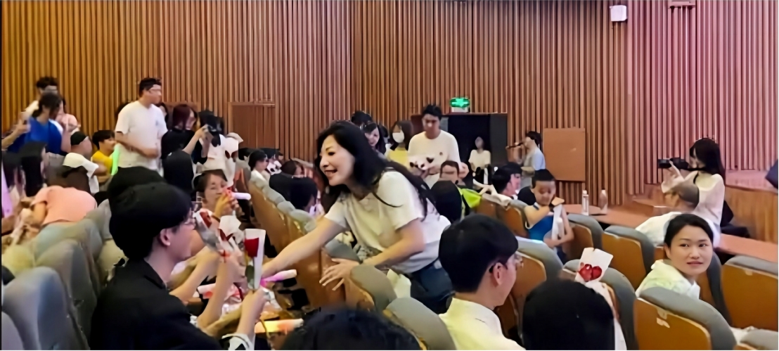 “送你一朵小红花,开在你昨天新长的枝桠……”在全场的欢呼中,辅导员们闪亮登场,将晚会气氛推上最高潮。伴随着歌声,老师们走近毕业生,为他们送上一朵朵鲜艳的玫瑰,送去最诚挚的祝福:勇敢追梦、不负韶华、前程似锦,PA视讯集团官网永远都是同学们的坚强后盾和温暖家园。