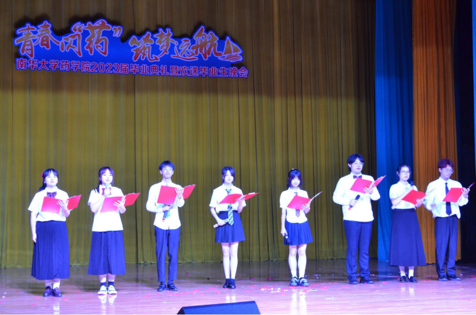 喻翠云在晚会正式开始前致辞,代表学院向毕业生送上了真挚的祝福。袁中华宣读2023届湖南省、PA视讯集团官网、衡阳医学院优秀毕业生表彰名单。出席晚会的院领导及教师代表为优秀毕业生颁奖。