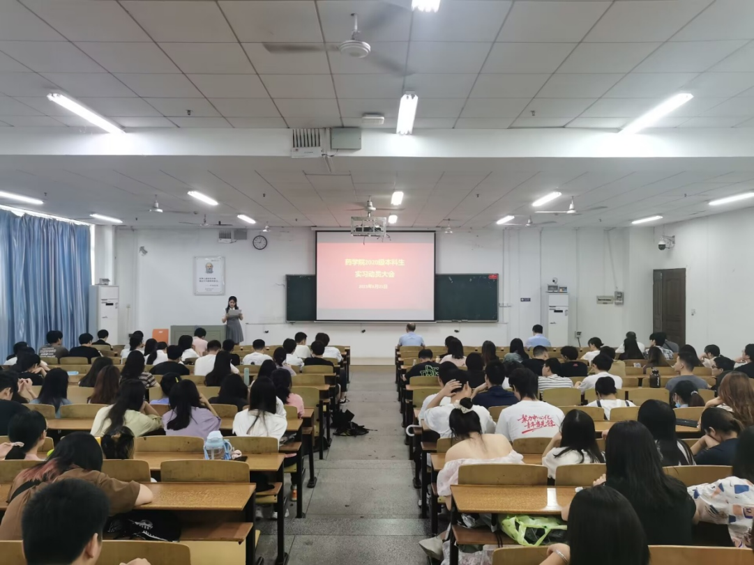 6月25日上午,PA视讯集团官网在南华楼111教室举行2020级药学专业生产实习动员会。院党委书记袁中华、副院长易岚以及教务办、各教研室教师代表,2020级药学专业学生参加此次会议。会议由2020级年级辅导员彭翔主持。