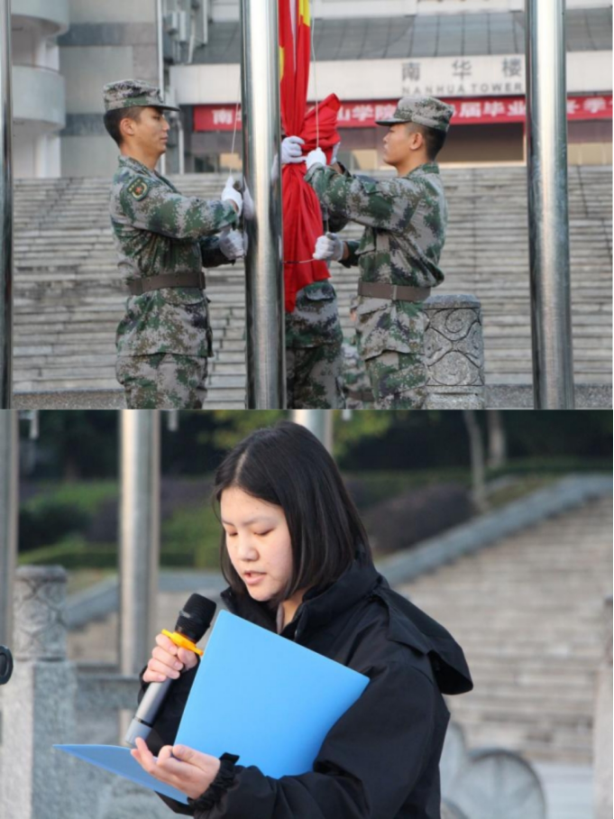 我院学生代表师延婷在国旗下发表主题为“强国有我,青春有为”的演讲。“当青春遇上迷彩,人生注定不平凡。每个人的心中都有一片净土,我心中的净土是在世界之巅的阿里”,师延婷结合自己曾服役于西藏阿里军分区经历,呼吁同学们肩负起时代的责任,将小我融入大我,以青春献礼祖国,为强国添上青春的光彩!