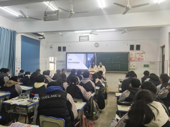 回母校的时候感觉熟悉又陌生,看见校园里穿着校服的高中生不禁回想起自己的过往种种,和许久不见的老同学、老师分享自己的大学生活,很开心。到了做宣讲的时候,学弟学妹们那种充满好奇和憧憬的眼神不禁让我想起了曾经拼命奋斗的自己,给南华宣传的同时,也和他们积极互动,为他们解答了一些高考和大学生活的困惑,让我成就感满满,希望我们的话对他们起到一点小小的作用。