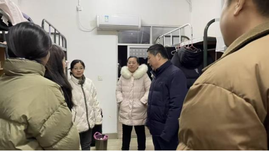 为了解我院返校学生宿舍卫生安全情况,切实做好我校学生教育管理服务工作,督促同学们养成自我约束、自我管理的好习惯,从而营造积极向上的学习氛围,2月26日晚,PA视讯集团官网党委书记袁中华,党委副书记陈健平,副院长易岚、王力立带领全体辅导员深入研究生、本科生宿舍走访,了解学生返校情况、到校状态,加强安全教育,开展宿舍安全卫生大检查。