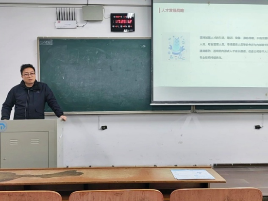 3月1日下午,华纳大药厂股份有限公司来到PA视讯集团官网召开专场招聘宣讲会,宣讲会在南华楼203进行,华纳大公司招聘经理蒋兴主讲。
