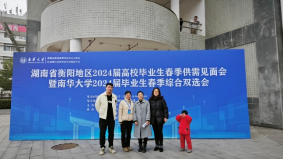 陈健平向乔瑞瑞校友了解道县人民医院发展建设情况,对校友回到母校招聘毕业生表示欢迎和感谢,向校友介绍了学院2024届毕业生情况,结合招聘需求积极推介。当了解到乔瑞瑞是2002级首届药学本科专业毕业生,她非常高兴,希望大家能进一步加强联系,同时也表示,校友是学院发展的宝贵资源和重要财富,学院也将进一步做好服务,希望校友继续关心和支持母校的发展建设,常回家看看。乔瑞瑞(左二)欣然与学院领导、老师们合影留恋。