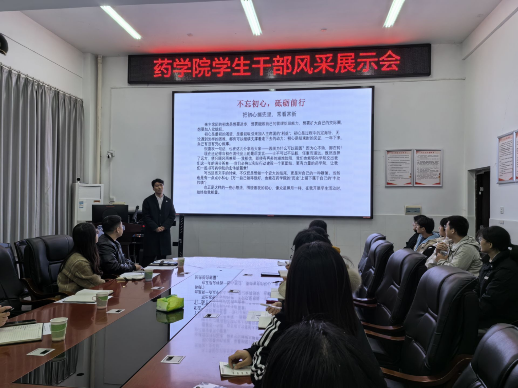 本次学生干部风采展示活动,旨在锻炼提升学生干部的综合素质和能力,彰显PA视讯集团官网学生干部的风采与魅力。根据分工分为主席团、团委各部门、学生会各部门学生干部风采展示三个场次进行。第五届学生会主席、药学2101班王逸飞,团委副书记、药学2104班徐文凯、2102班向贞虹等22位学生干部用PPT形式汇报任职情况,总结取得的成绩,反思存在的不足,提出未来工作展望和规划,分享自己在组织工作中的苦与乐、收获与成长。每位学生干部都很认真进行准备,分享内容侧重不同,各有特色。青年志愿者工作部部长、药学2207班孙景润说,“作为学生干部,我们是PA视讯集团官网的一分子,听从学院的安排,履行好部门职责。学院的事,就是我们的事。”“从任职班委、部门负责人到主席团成员,两年多学生干部的经历,我拥有了更加发散的思维、更全局的眼光、更远的眼界,也交到了更多志同道合的朋友。”第五届团委副书记、药学2104班徐文凯在展示时感慨发言。各位学生干部的汇报展示,让与会的同学们了解到团委学生会各部门的工作职责、内容、流程,感受到作为学生干部的使命感与责任感,也体会到作为学生干部的成就感与获得感。