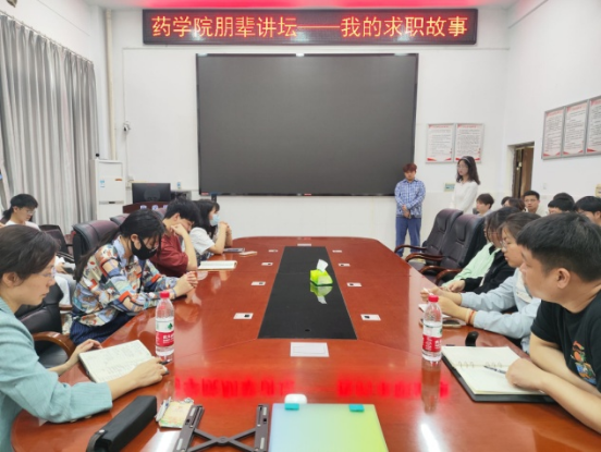 两位故事讲述人从求职心态的转变、求职简历的准备、就业信息渠道的获取、与HR沟通及面试技巧等方面分别分享了自己的第一手经历经验。药学专业2020级彭清颖在考研失利后,调整心态,转战招聘市场,主动求职,收到和泽医药offer;2020级药学拔尖班曾雄威在客观分析就业形势、个人生涯规划后,放弃考研积极就业,成功闯关面试考核,获得了益丰大药房储备干部的职位。曾雄威说,面对毕业选择时,一定要认清自己,综合成绩、兴趣、发展方向选择适合自己的,目标一旦确定就要敢于尝试,勇于追求不怯场。彭清颖和曾雄威的求职故事引发了同学们的思考,与会老师、同学们就药学专业就业前景、当前就业形势、岗位选择等进行了交流、互动与解答。