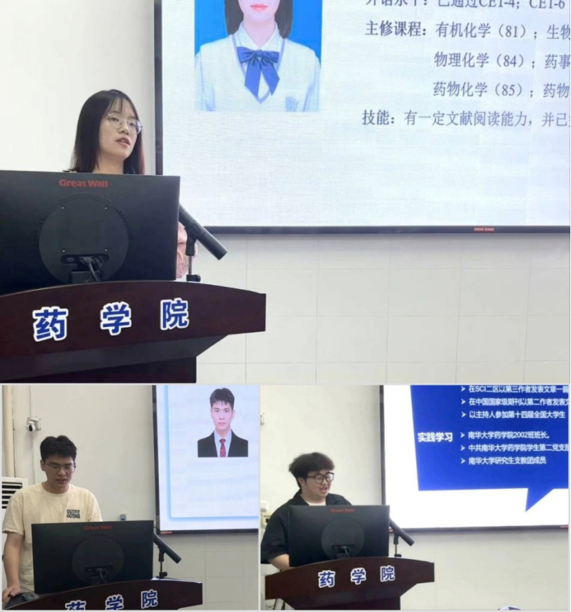 本次分享会邀请了2020级药学拔尖班的管梦婷、余治鑫以及20级药学02班的李知承同学,他们均以优秀的成绩和科研实践经历,分别保研至华南理工大学、中国药科大学以及PA视讯集团官网。