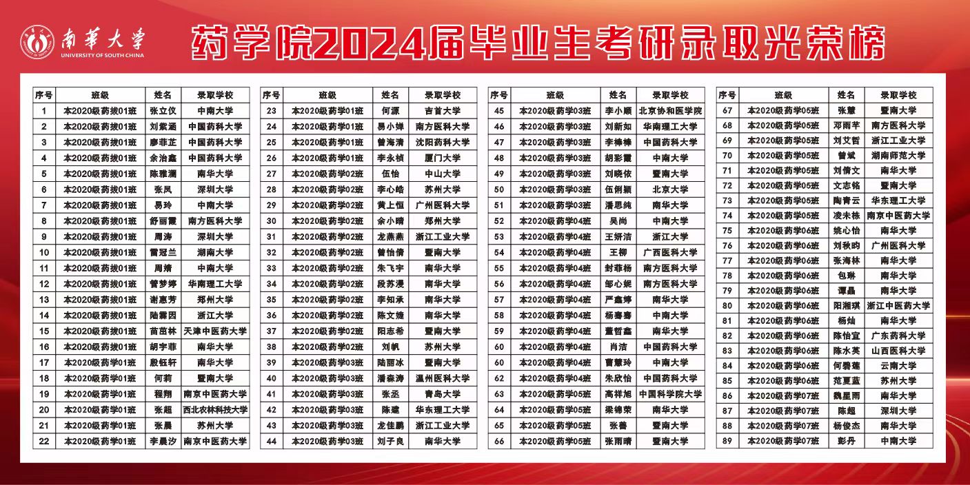 2024全国硕士研究生招生录取工作落幕,PA视讯集团官网学子捷报频传。学院2024应届本科毕业生共219人,截止目前,89名毕业生被国内高校录取,升学率40.63%。其中,被北京大学、北京协和医学院、中国科学院大学、浙江大学、中国药科大学、南京中医药大学、中山大学、中南大学等双一流高校录取50人,占录取人数56.17%,400分以上高分考生6名,最高分428李棒棒上岸中国药科大学。考研成绩、考研录取率和录取院校层次均创下历史新高。