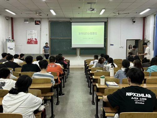 廖大琪老师以大学生“如何get心仪职位”为主题与同学们进行互动,为同学们分析当今社会现状与行业背景,并就求职生如何进行自我认知梳理、就业阶段特征分析及就业考虑因素等话题作经验分享,通过案例生动讲述简历制作的相关问题。同时,给在场同学们分享了面试过程中所需具备的职业素养和常见问题的思考方式。