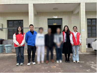 (志愿服务队与就读于石鼓二中的姐妹合影)
