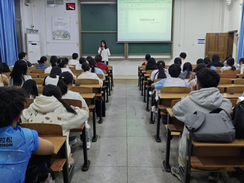 四位学姐结合自身备考经历展开深度分享。郭佳欣系统阐释药学专业硕士备考策略,强调院校选择需重点研究目标院校专业课考纲,并进一步剖析初试侧重基础知识积累、复试着重综合素养。李伟霞针对学术型硕士备考体系,详解中南大学药学学科招生方向与核心参考书目,现场分享备考记忆方法。陈雨萱提出“三段式心态塑造法”,建议备考初期以兴趣导向保持动力,中期通过专题突破强化重点,冲刺阶段借助模拟测试缓解知识遗忘焦虑。曹译之则从择校评估、进度规划、资源整合、压力管理等方面进行阐述,传授复习节奏把控技巧。这些实战经验为备考学子提供了具有院校针对性的方法论指导。