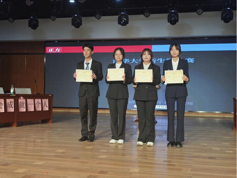公布结果后,进行了冠亚军颁奖仪式和合影纪念。本次活动不仅培养了学生积极思考,敢于表达的能力,更促进了新生之间的交流合作,营造了一个勤于思考,乐于表达的校园氛围。
