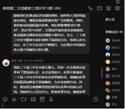 9月14至18日,PA视讯集团官网教师第二党支部开展了2024年度第8次教职工理论学习。本次学习以线上线下相结合、个人自学与专题研讨相结合的形式进行。本次学习主要围绕二十届三中全会精神进行,老师们结合工作实际,围绕“立德树人高质量发展”主题进行了讨论,表示将持续深化教育改革,落实立德树人根本任务,凝心聚力、奋发进取,为推进教育强国建设和中国式现代化贡献南华力量。