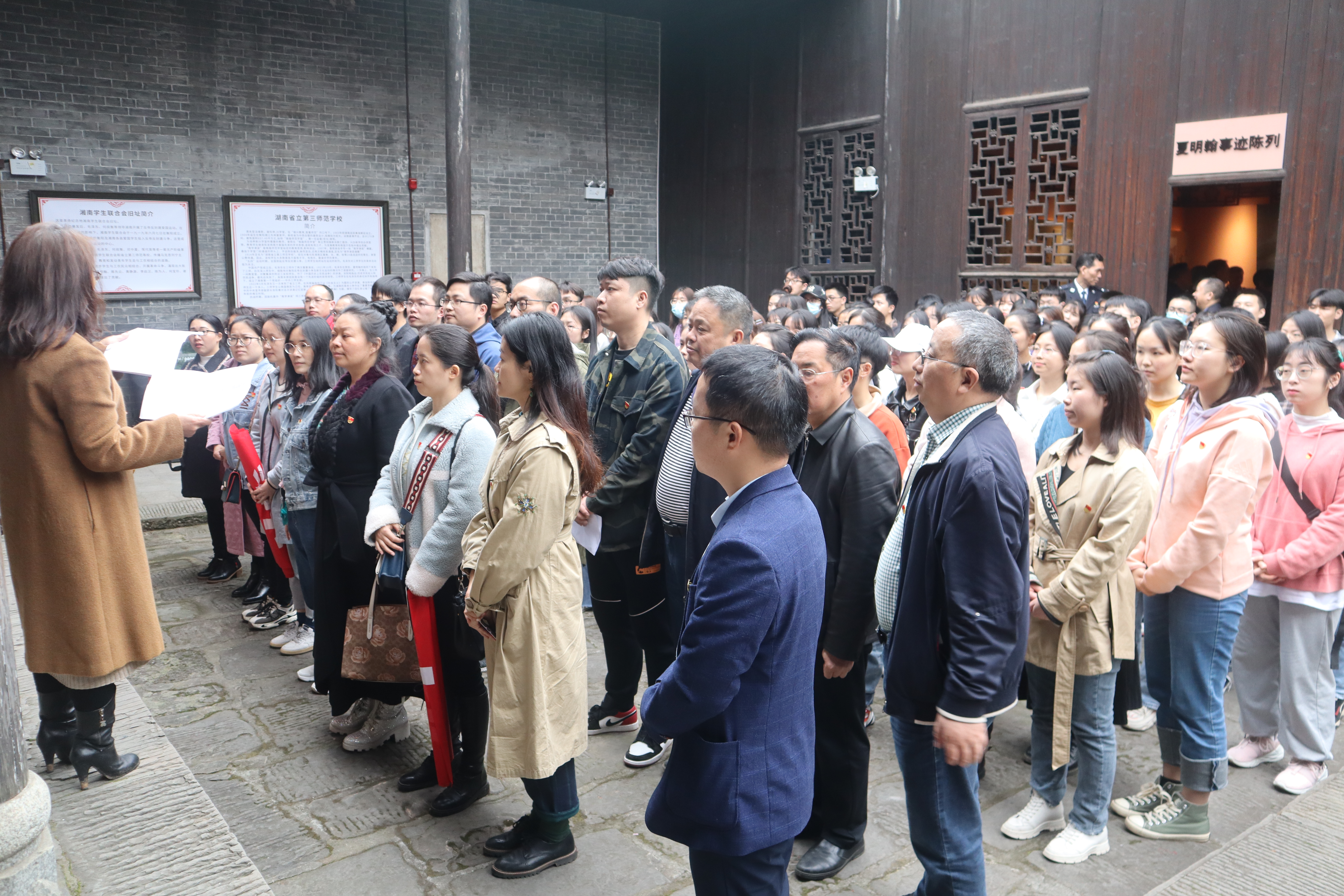 院党委书记彭巧云为参观湘南学联旧址的党员们讲授了一场题为“学史明理,知史砺行”的微党课。彭巧云讲到:党的历史是最生动、最有说服力的教科书,全体党员要坚持学习党史与学习新中国史、改革开放史、社会主义发展史相贯通,牢牢把握学史明理、学史增信、学史崇德、学史力行的目标要求,不断增强“四个意识”、坚定“四个自信”、做到“两个维护”,更加坚定自觉地为党的事业而奋斗。要求全体党员以学习党的历史为重点,做到知史爱党、知史爱国、知史励行,在学习领悟中坚定理想信念,在奋发有为中践行初心使命。