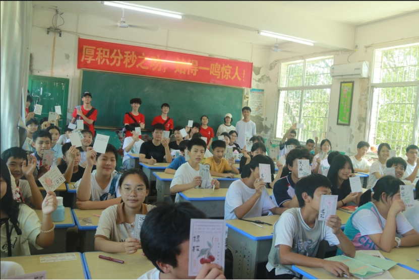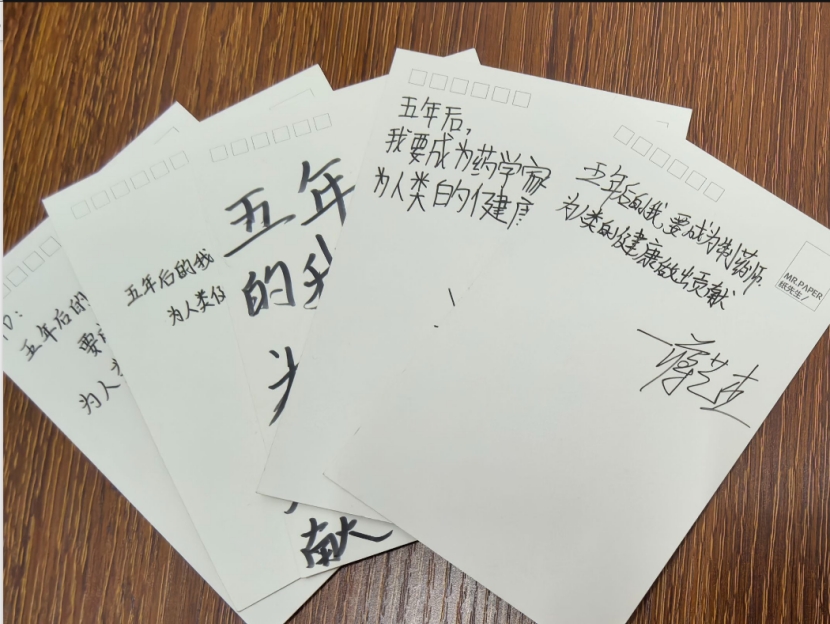 课堂从“药物知识快问快答”破冰,到“屠呦呦与青蒿素”“顾方舟与糖丸”等科学故事,再到“五年后的我”梦想卡书写,乡村学子的眼睛逐渐亮了起来。“我想成为新药研究员,为人类健康作贡献!”“我要像哥哥姐姐一样,去乡村普及用药知识!”明信片上的稚嫩字迹,是实践团最珍视的“成果”。团队成员何雨涵说:“原来科普不仅是传递知识,更是点燃梦想。”