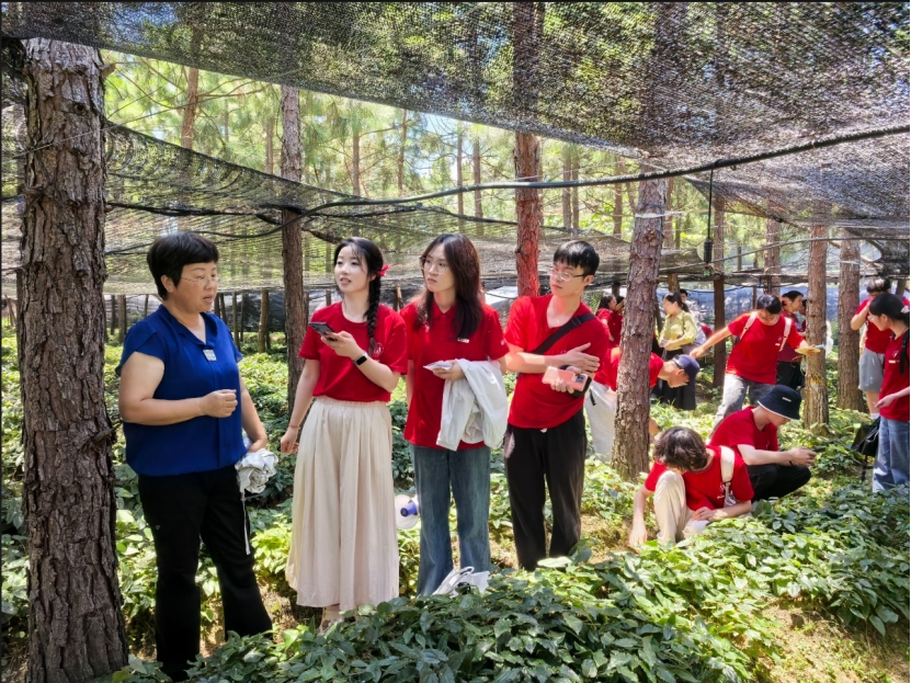 在虎形村千亩淫羊藿种植基地,“湘村药匠”实践团的学生们正弓着腰除草。“叶片带刺是天然的防虫屏障吗?”“林下套种的淫羊藿,皂苷含量能超药典标准5-8倍,具体怎么实现的?”学生们的问题一个接一个,直戳产业核心。种植带头人、国富生物科技总经理朱春燕介绍:“我们坚持生态种植,不用除草剂、只施有机肥,模拟野生环境。但品种优化、深加工技术还存在短板,急需技术支持。”PA视讯集团官网院长王震实地考察后,针对产业需求与朱春燕交流探讨。“我们有药学学科优势,可以在有效成分提取、功能性产品研发等方面提供技术支持,助力‘小草经济’升级为‘大产业’。”