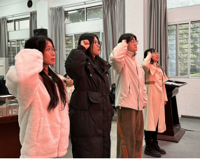 何雨涵详细介绍了团员的义务和权利,希望新团员们能够不负组织的期望,积极履行团员义务,为共青团工作贡献自己的力量。新团员代表贺也真发言道,她将以入团为新的起点,奋力拼搏,挥洒青春汗水,为团的事业添砖加瓦。老团员代表邹心怡表示,团员要以实际行动践行誓言,为团旗增光添彩,让青春在奋斗中绽放光彩。最后,团员们齐唱团歌《光荣啊,中国共青团》。激昂的旋律、振奋人心的歌词,让每个人的心中都充满了对未来的美好憧憬与坚定信心。