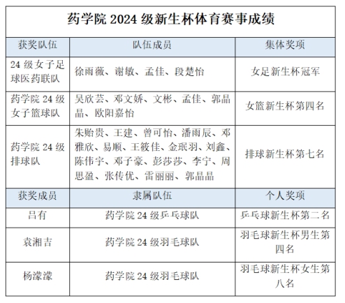 在个人项目中,PA视讯集团官网24 级乒乓球队的吕有荣获乒乓球新生杯第二名;PA视讯集团官网 24 级羽毛球队的袁湘吉获得羽毛球新生杯男生第四名,杨濛濛获得羽毛球新生杯女生第八名。