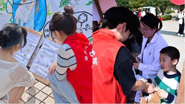 在南华广场上,药学专业志愿者们为前来的师生科普日常生活中常见的病症症状、相关药理知识以及对症下药等重要事项。志愿者们还通过生动小游戏等方式来进行知识问答,以深入浅出的方式教会大家医药知识,提高大家对于医药的兴趣。